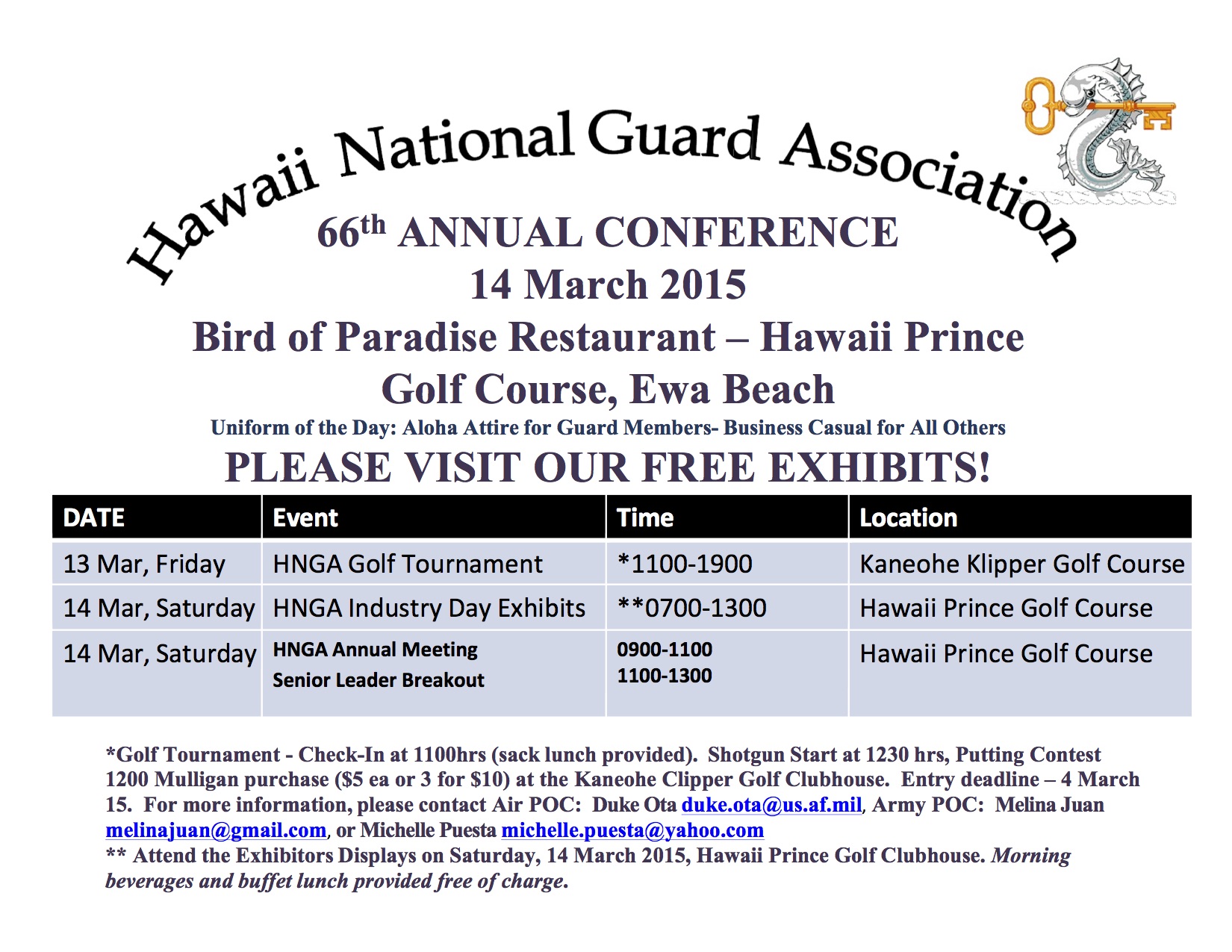 Hawaii Air National Guard (HIANG), Hawaii Army National Guard (HIARNG), Hawaii National Guard Association (HNGA), National Guard Association of the United States (NGAUS)