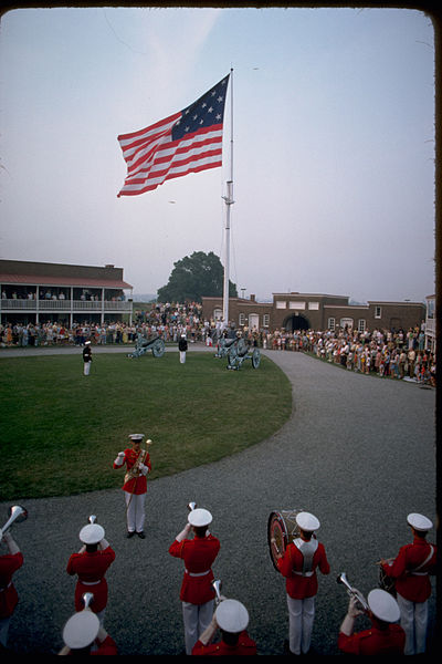 “O say can you see, by the dawn’s early light,” a large red, white and blue banner? “Whose broad stripes and bright stars . . . were so gallantly streaming!” over the star-shaped Fort McHenry during the Battle of Baltimore, September 13-14, 1814. The valiant defense of the fort by 1,000 dedicated Americans inspired Francis Scott Key to write “The Star-Spangled Banner.”
