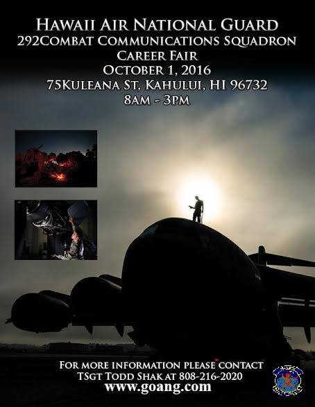 HIANG career fair on the island of Maui! Interested in joining the HIANG? Come check out the 292nd Combat Communications Squadron ‘s career fair on October 1st!