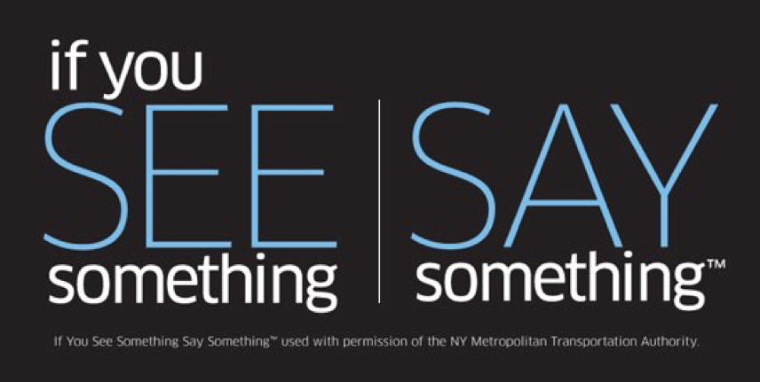 It takes a community to protect a community. Report suspicious activity – dial 9-1-1.