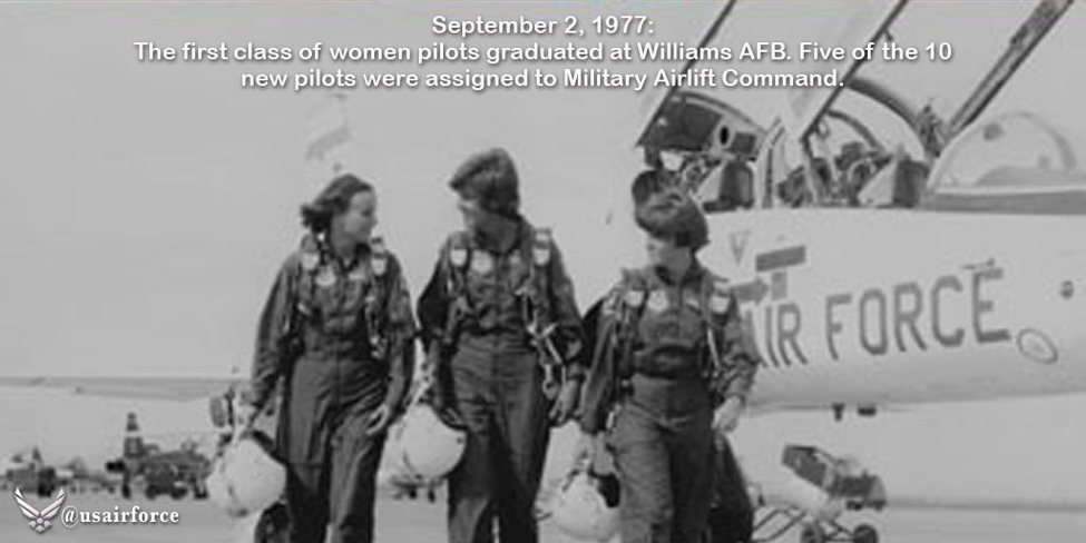 The ten women along with their 36 male classmates, received their Silver Wings on 2 September 1977. They are Captains Connie Engel, Kathy La Sauce, Mary Donahue, Susan Rogers and Christine Schott; First Lieutenants Sandra Scott and Victoria Crawford; Second Lieutenants Mary Livingston, Carol Scherer and Kathleen Rambo.