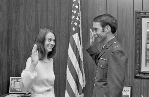 The photograph above shows Kathleen Berg being sworn in by her husband Stephen Berg. The date is in early 1977 because she was commissioned in August 1977.