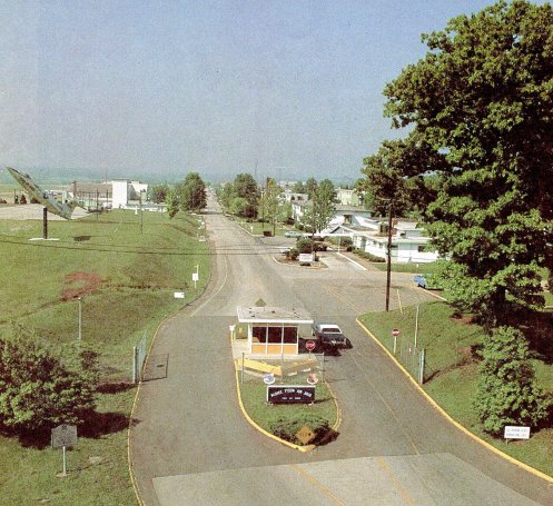The undated photograph above shows the base front gate. Behind the F-104 Starfighter, is the drill pad where TEC students practiced drill and ceremonies. There is a small base exchange and gas station there now.