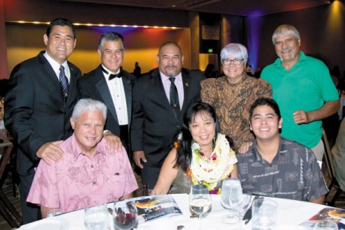 (Back, from left) Stephen Sasaki, Walter Kaneakua, Nate Lorenzo, Eda Kaneakua, Michael Sabas, (front) John, Jennifer and Naki Sabas. – Tony Grillo photo