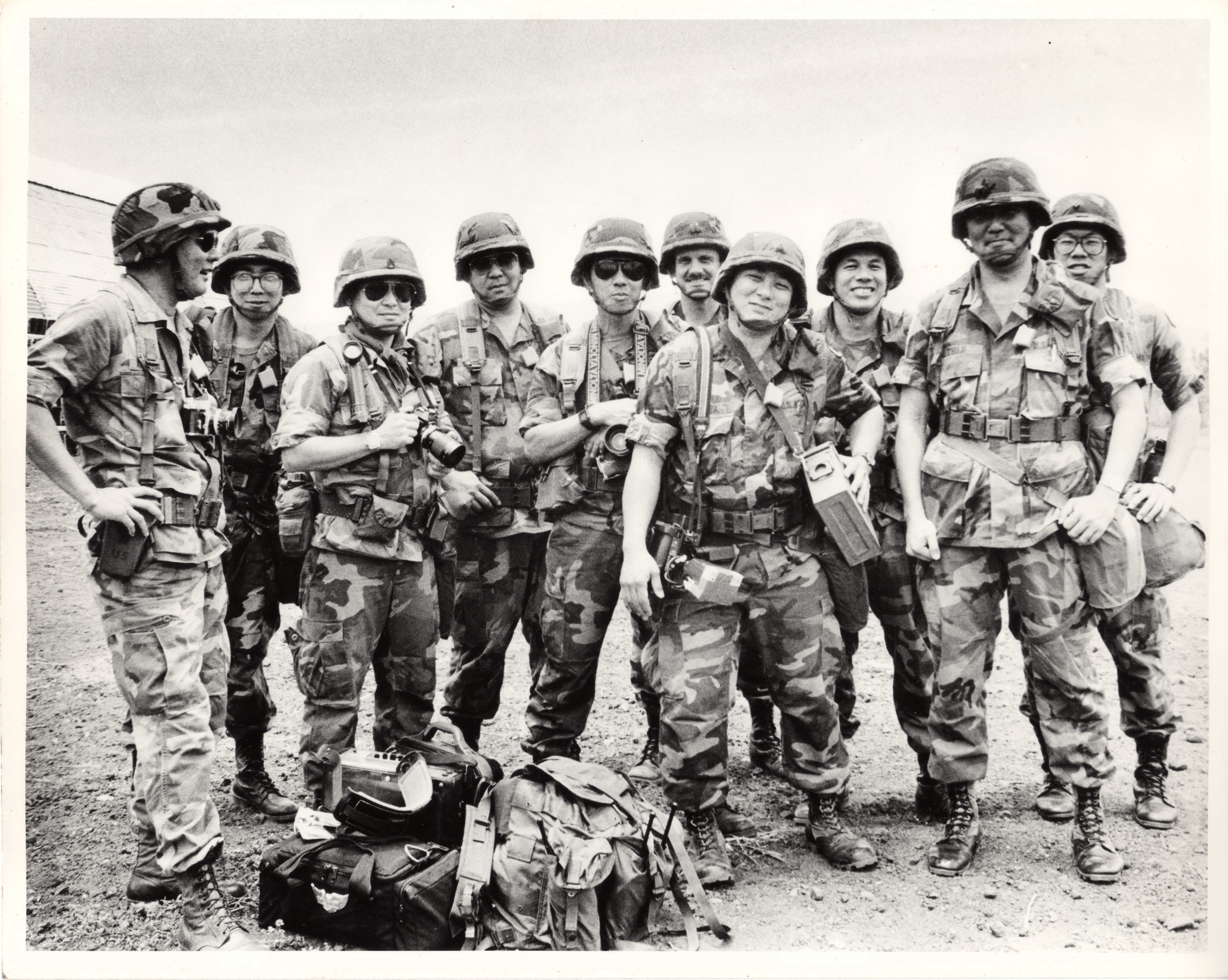 Dennis Fujii sent in this photograph of members of the 117th Public Affairs Detachment, Hawaii Army National Guard. The photograph was taken at the Pohakuloa Training Area (PTA) during the 1986 Annual Training.
