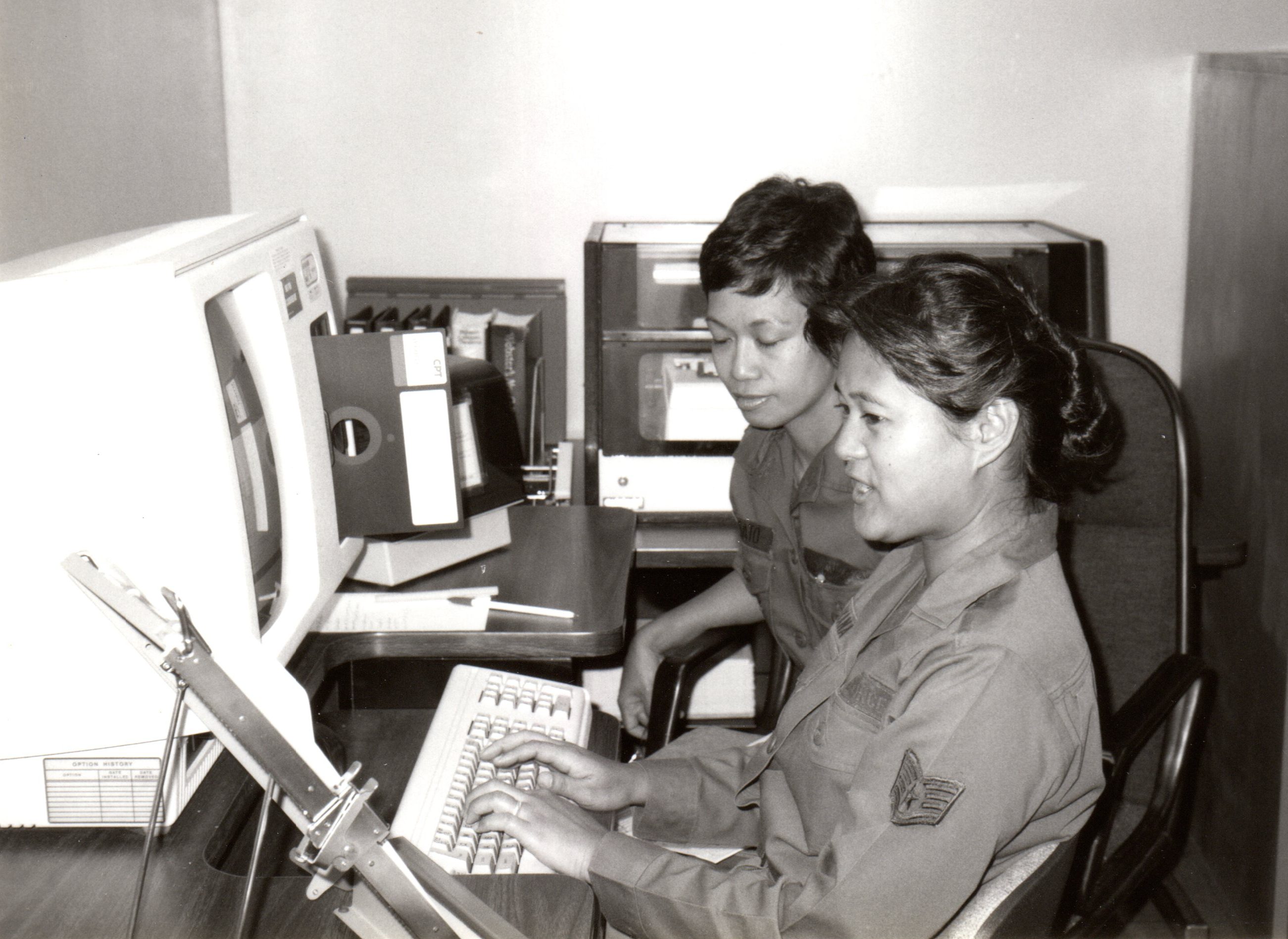 This 1986 photograph has Katherine Asato and Roberta Akana working on their CPT machine. Both Kathy and Robbie retired after long fulltime careers.