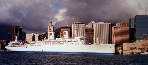On January 2, 1993, more than 470 Hawaii National Guard members sailed to Kauai aboard the luxury liner SS Constitution. The three-day, all expenses-paid voyage, was donated by American Hawaii Cruises in appreciation of the Guard’s actions in the Hurricane Iniki response. It was a cruise enjoyed by all who sailed.