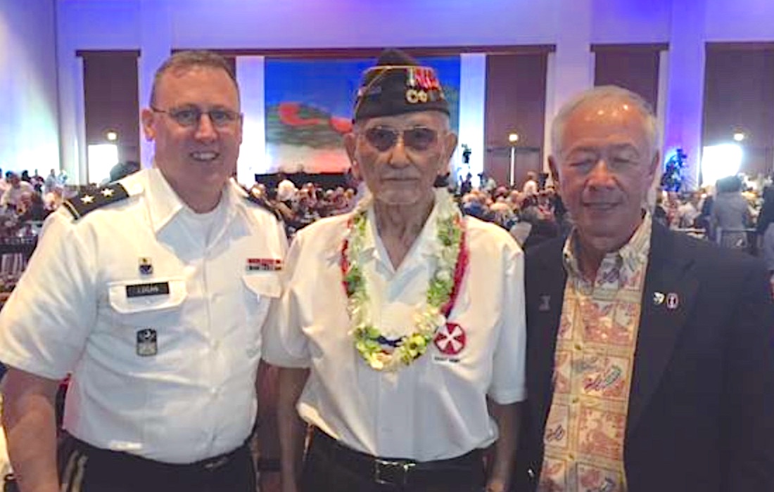 During the 2016 Americans of Japanese Ancestry Tribute event, part of the 75th Anniversary of Pearl Harbor, three Adjutants General took time for a photograph. In the photograph left to right are MG Arthur “Joe” Logan, Maj. Gen. (Ret) Arthur U. Ishimoto, MG (Ret) Robert G.F. Lee.