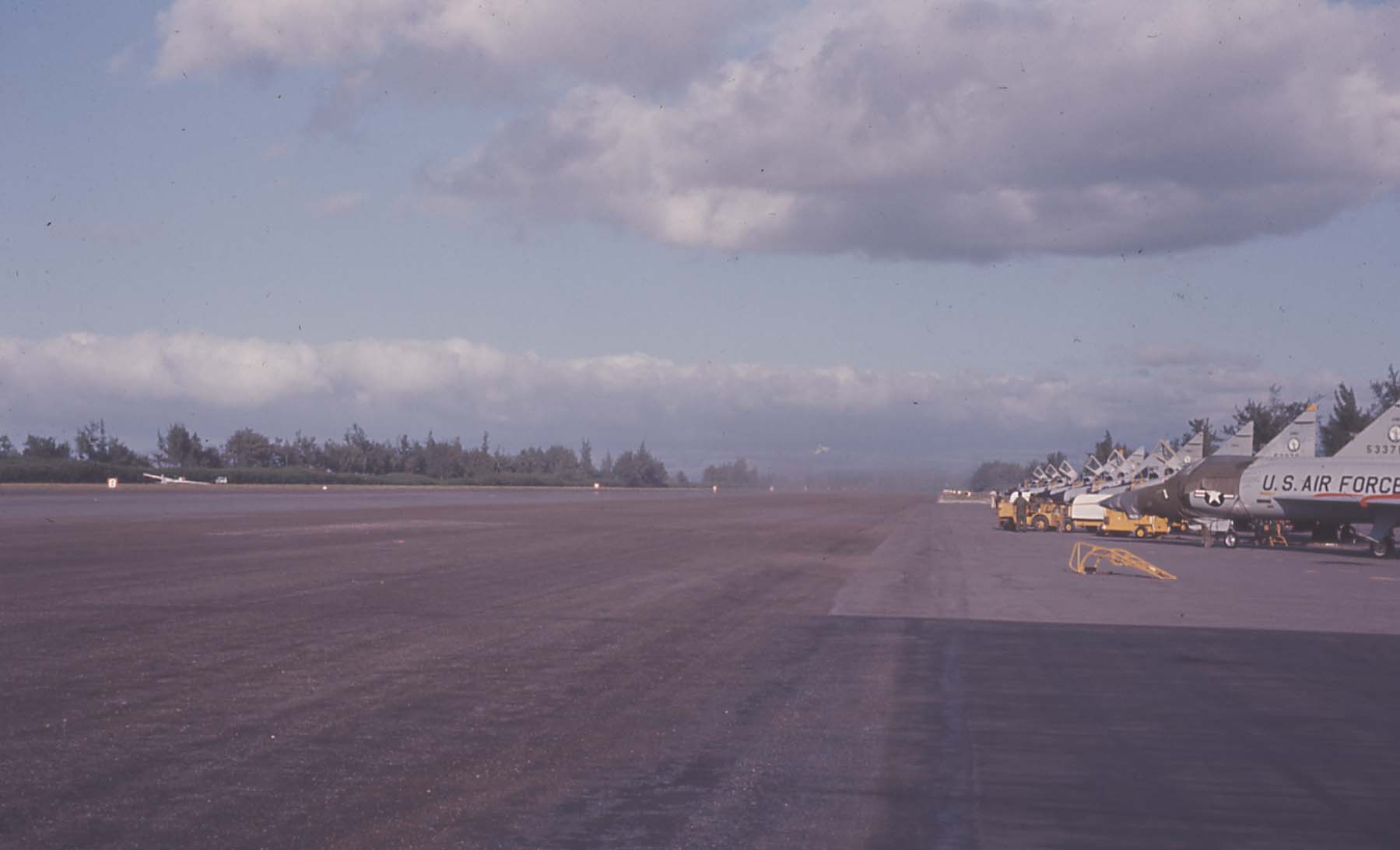 This photograph shows Dillingham Field in the middle 1960s. After the then-154th Fighter Interceptor Group converted to F-102 Delta Daggars in 1960, some of the annual summer camp training was done at Dillingham Field.