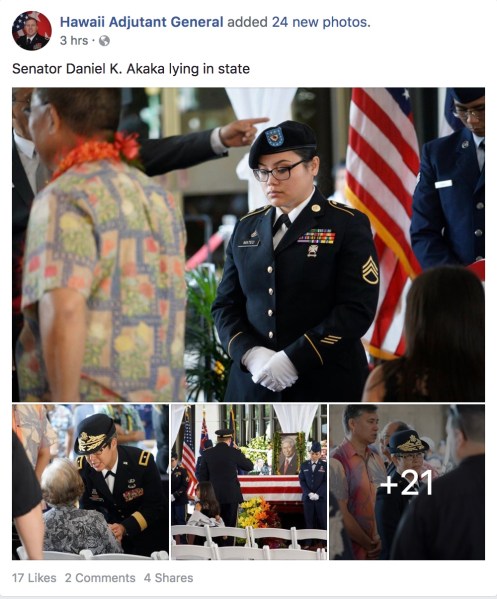 Facebook, Hawaii National Guard (HING), Hawaii State Capitol, History, lying in state, Senator Daniel Akaka, US Army Reserve