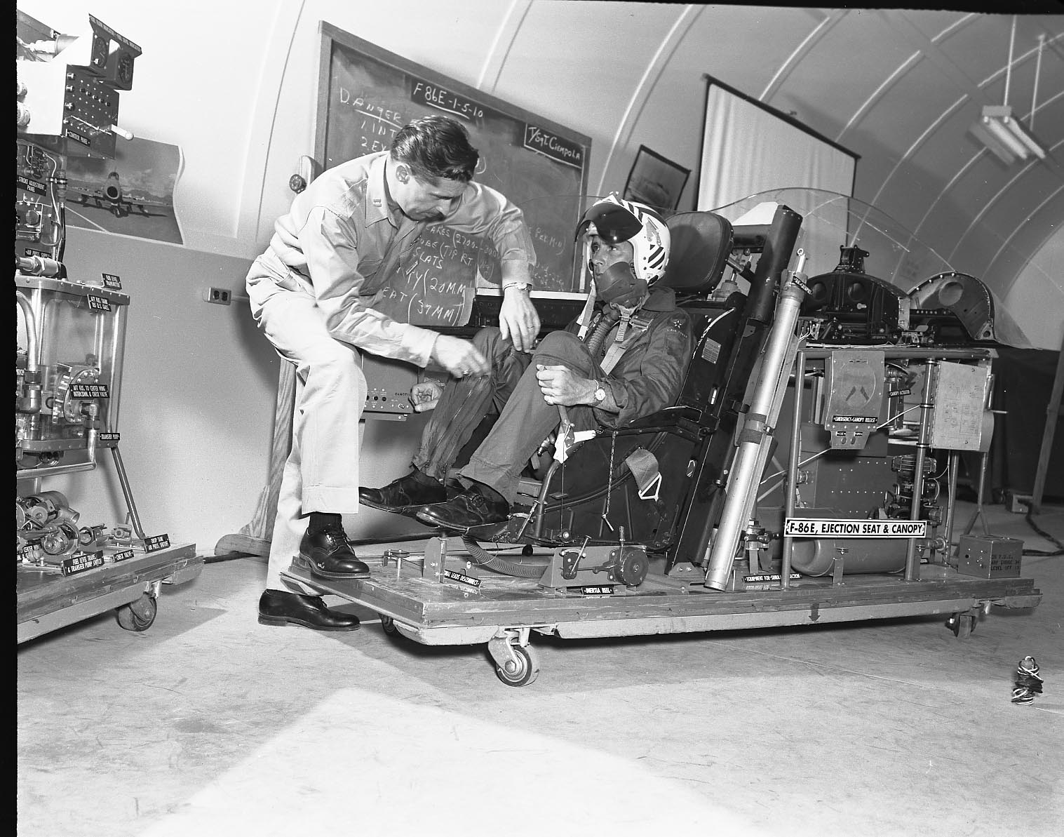 This undated photograph shows a 199th Fighter Squadron pilot under going ejection seat training.