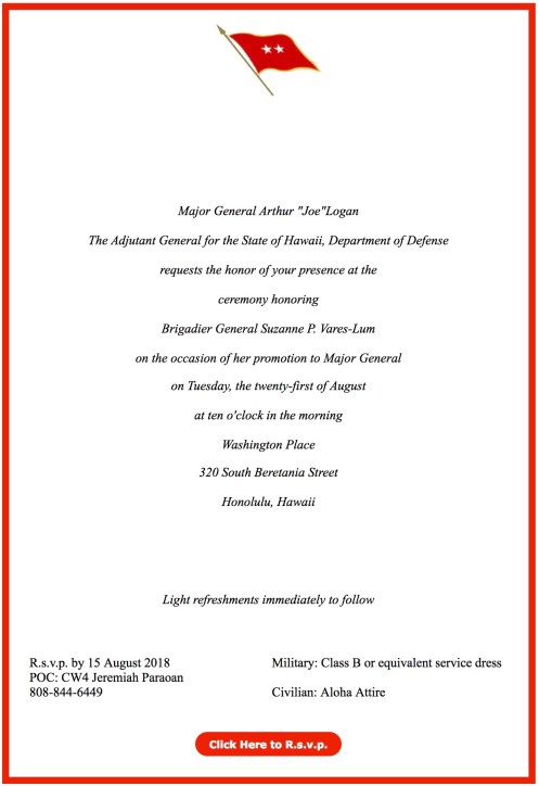 History, major general, promotions *, Suzanne Vares-Lum, United States Indo-Pacific Command (USINDOPACOM), Washington Place
