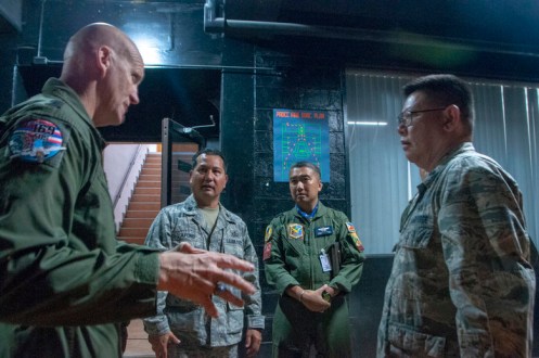Maj. Gen. James O. Eifert, Air National Guard Assistant to the Commander, Pacific Air Forces leads a discussion on air defense concepts during a visit to the Philippine Air Defense Control Center, Aug. 7, 2018, Villamor Air Base, Manila, Philippines. The airmen were taking part in a subject matter expert exchange with Philippine Air Force counterparts as part of a National Guard State Partnership Program engagement. (U.S. Air National Guard photo by Senior Airman Orlando Corpuz)