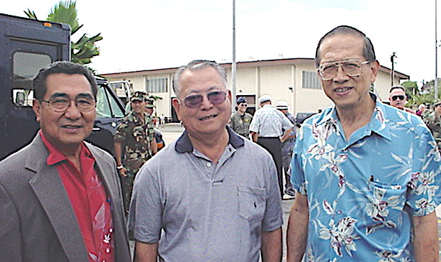 In the photograph are three colonels: Dr. Norberto Baysa, former commander of the medical unit; Col Ernest Shima, former commander of the 201st Combat Communications Group, and Dr. Walter Chang, former commander of the medical unit.