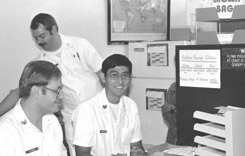 This photograph show then-SSgt Alan Yoneshige of the then-154th USAF Clinic. It was taken during the unit’s 1982 deployment to Clark AB, Philippines. The other Airmen in the photograph are Air Force members.