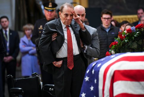 Bob Dole, with help, stands for final salute to George HW Bush at US Capitol