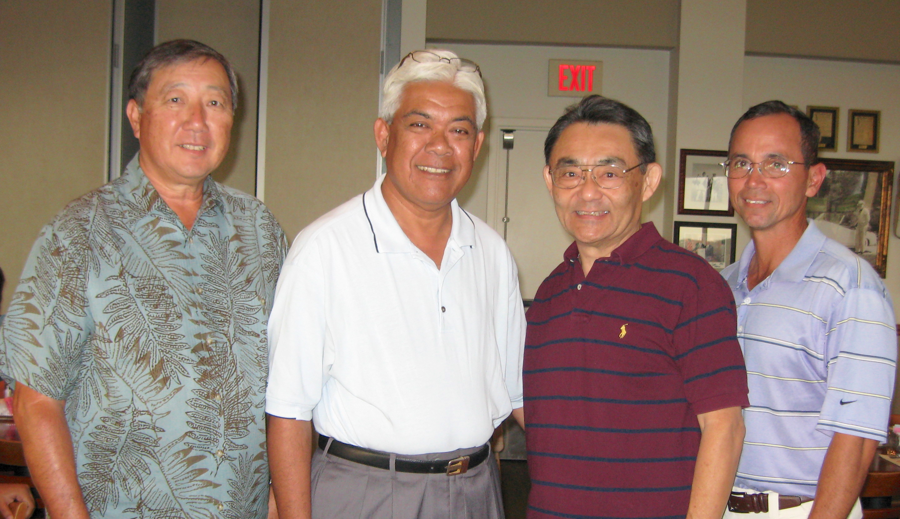 On February 27, 2010, there was a retirement party for Colosse Eliapo at the Navy Marine Course. Attending were many of his family, friends and co-workers. In this photograph shows (L-R) Alwyn Yoshimura, Colosse, Galen Yoshimoto and Duke Ota.