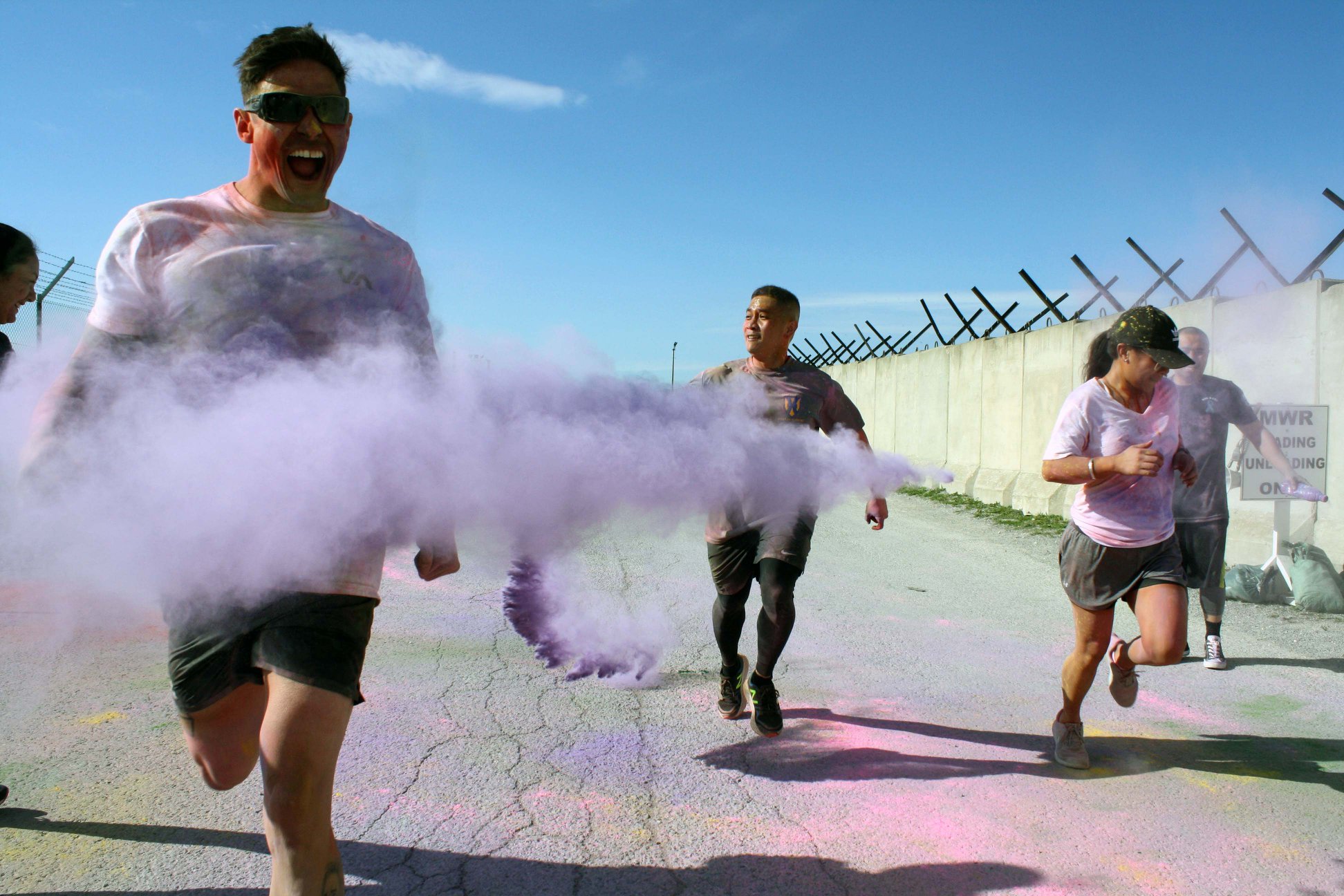 Kosovo Force 25 Soldiers participate in a 5k “Color Fun Run” on Camp Bondsteel, Kosovo on April 28, 2019. The run was hosted by the SHARP Jr. Council members to raise awareness of sexual assault and prevention. Kosovo Force – KFOR is dedicated to the enduring commitment NATO has to the people of Kosovo.