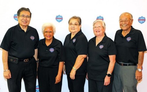 In the photograph: (L-R) Rick Lau, Frances Camacho, Paulette Ing, Bertha Kaui and Mel Hayashida.