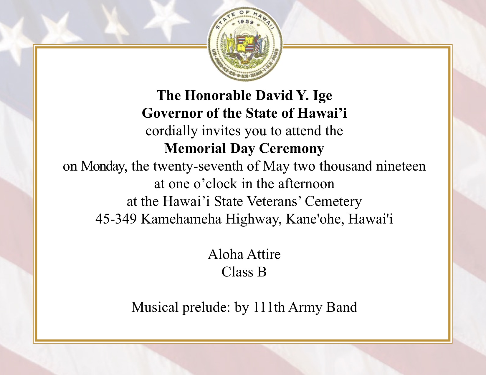 111th Army Band, Governor David Y. Ige, Governor's Memorial Day Ceremony, Hawaii State Veterans Cemetery, History, Office of Veterans Services (OVS)