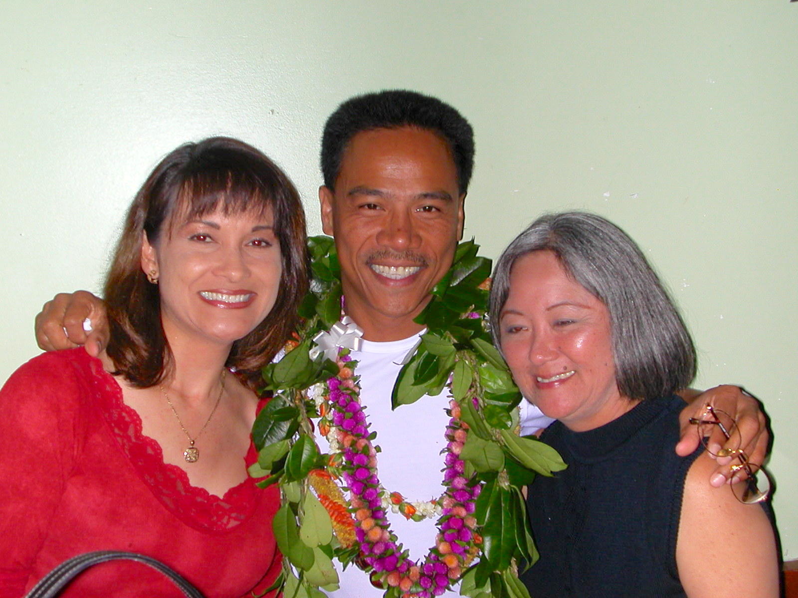 This photograph shows Vickie Padello, Jun Arconado, and Iris Kabazawa. It was taken on October 25, 2002 at Jun’s going away party.