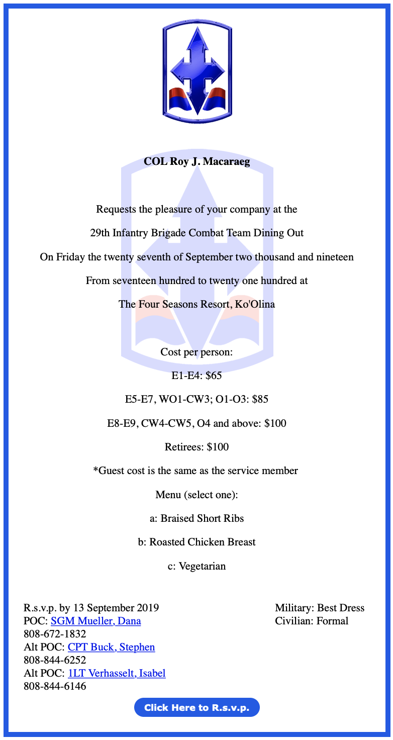 29th Infantry Brigade Combat Team Dining Out