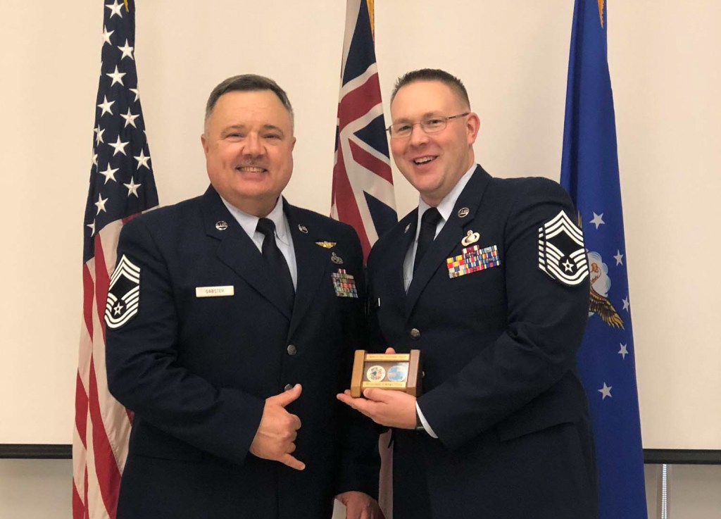 It was a happy Valentine’s day indeed as Chief Robertson’s family, as well as military members and friends watched him advance to the Air Force’s top 2% of the enlisted force.