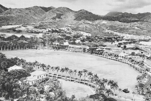 Last week, we had a post about Fort Shafter and its part of Hawaii’s history. The post included a modern photograph of Palm Circle. After the post a Retiree News reader sent the photograph above. The date is estimated in the early 1920s. The photographs show that most of the older facilities are still there.