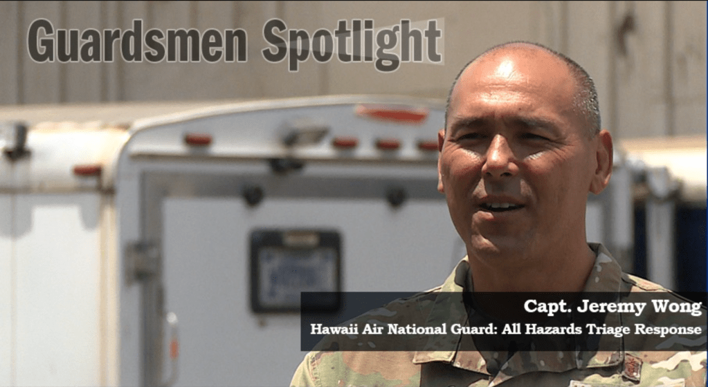 Under normal circumstances, Hawaii Air National Guard, Capt. Jeremy Wong would be in a local hospital working as a registered emergency response nurse specializing in trauma care. Now, he’s on military orders as the All Hazards Triage Response Team chief (AHTRT), 154th Medical Group Detachment assigned to Task Force Medical (TF MED) providing medical support to Hawaii National Guard Joint Task Force and county Task Forces.