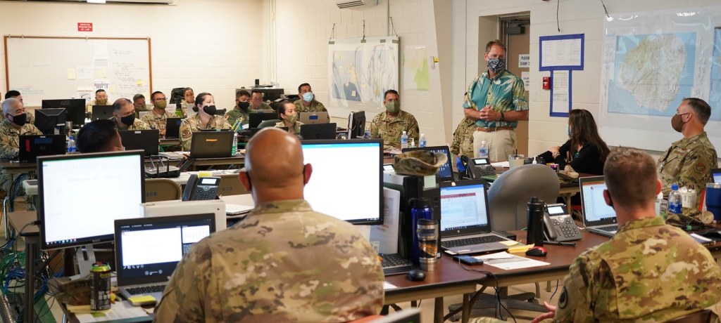 During the visit, Case was briefed on the Hawaii National Guard taskings/missions throughout the state. He also sat in on the commander’s update brief where each task force and staff section reported on their efforts.