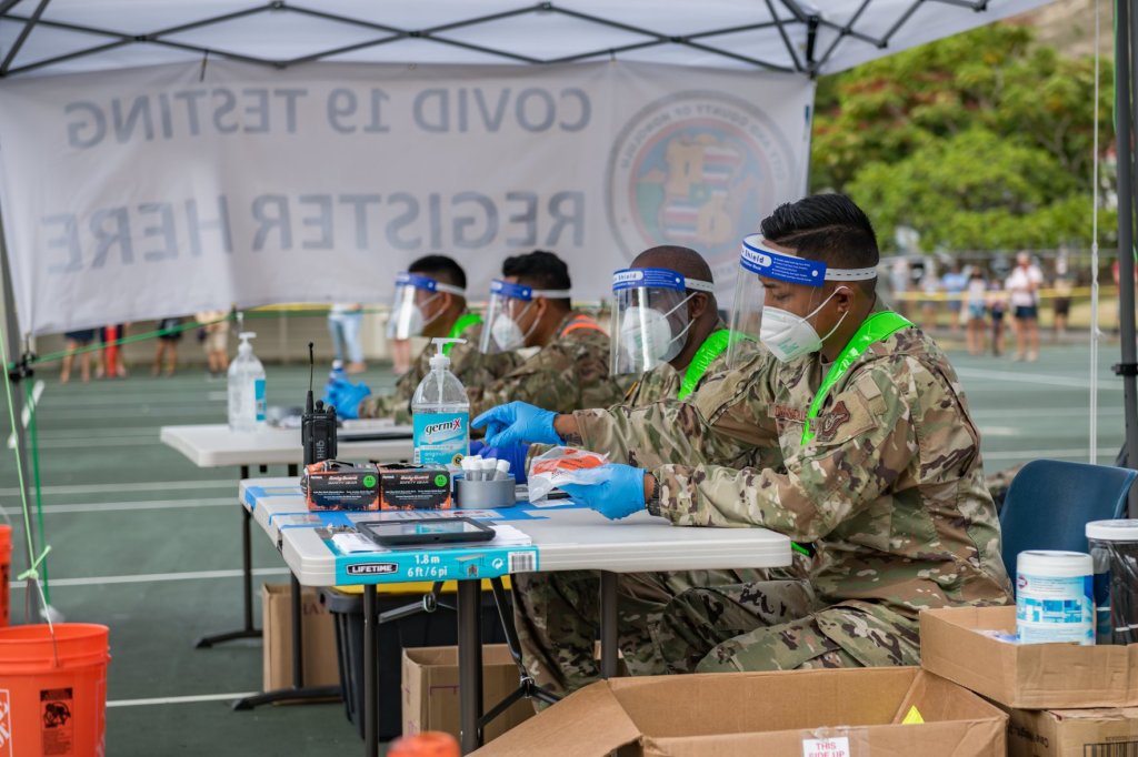 Hawaii National Guard Soldiers and Airmen have been assisting the Honolulu Fire Department with COVID-19 ‘surge testing’ throughout the City and County of Honolulu. Testing will be conducted in a large scale over this 14-day period.