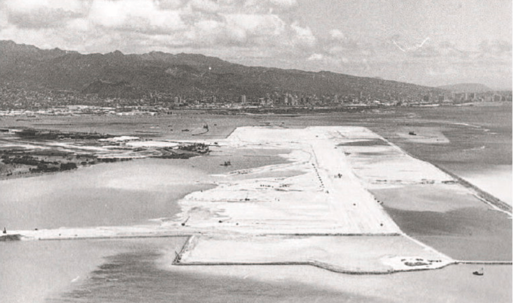 The Honolulu International Airport reef runway is now 80% complete and is expected to be completed sometime in mid-1976. It is being build at a cost of about $46 million by contractor Hawaiian Dredging and Construction Co. The runway will not only increase the aircraft handling capacity of the airport, but will also reduce aircraft noise of Honolulu and Kalihi-Palama.