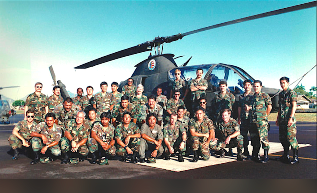 The old “A-Team …” A Company, 193rd Attack Helicopter Battalion, HIARNG circa June 1987 at then-Wheeler Air Force Base (now Army Airfield) with the best-damn AH-1/OH-58 crews around back then led by two punk-LTs, Protacio and Bolante.