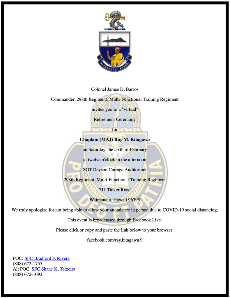 Chaplain Ray Kitagawa Retiring