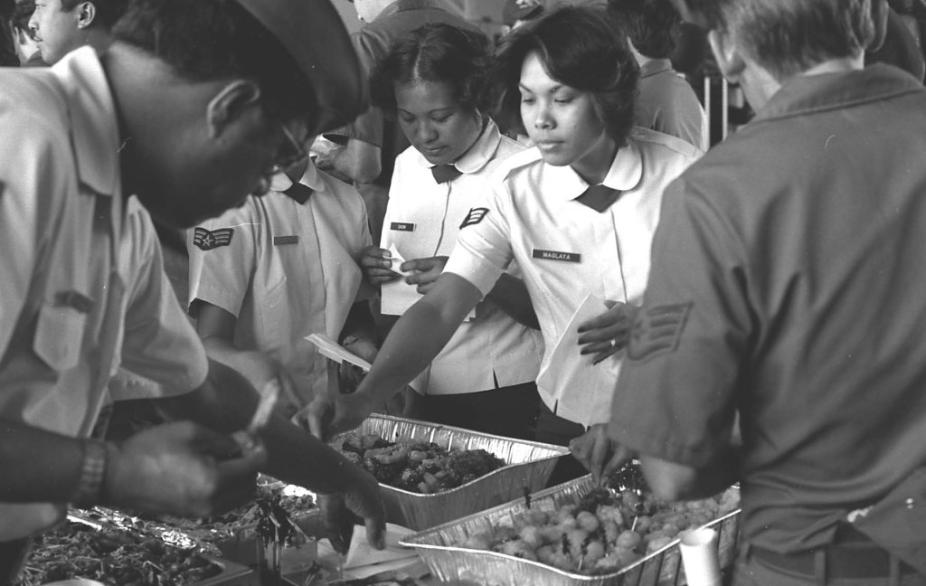 In the left picture is: Bobby Ramos, her back facing Stephanie Chow, Doreen Pedro, Lourdes Maglaya, and Helen Kim. Helen was the first female air operations staff member in the 199th Fighter Squadron. She started in 1975, but unfortunately passed away a number of years later.