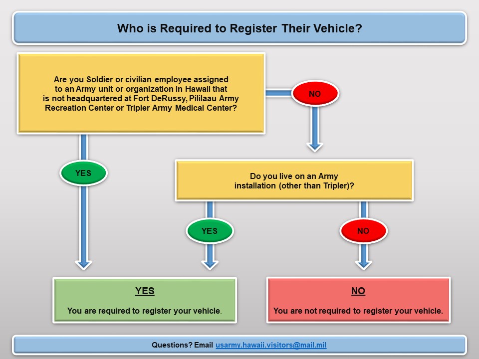U.S. Army Hawaii Soldiers, family members and Department of the Army civilians assigned to Army organizations, AND anyone living on an Army installation in Hawaii are required to register their privately owned vehicles with the garrison.