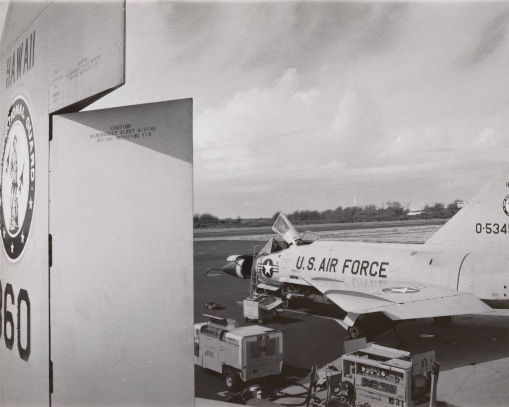 The undated shows a Hawaii Air National Guard Convair F-102A Delta Dagger on the ramp at Dillingham Field. The 154th Fighter Interceptor Group flew out of Dillingham during “summer camps” in the 1960s and the early 1970s.