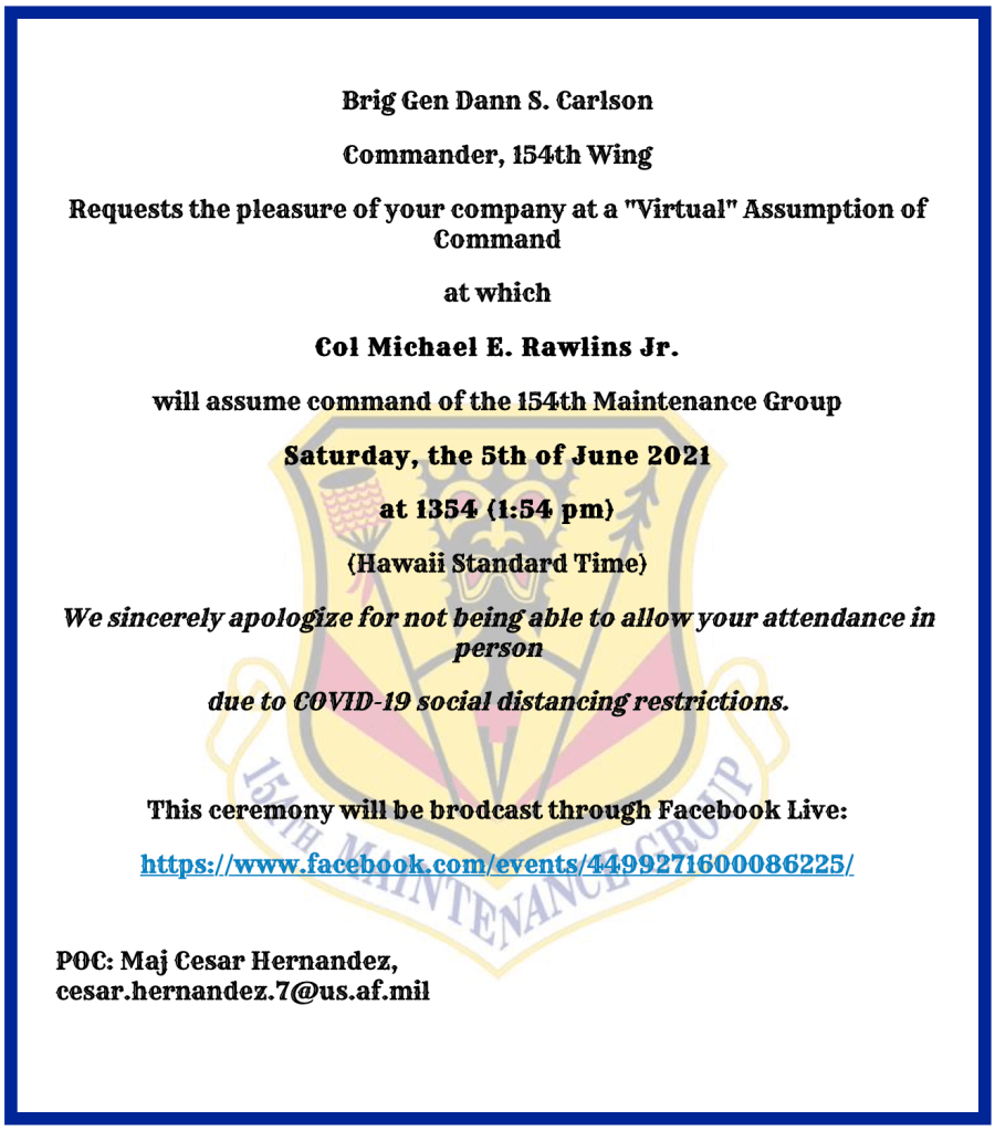 154th Maintenance Group (154 MXG), 154th Wing (154 WG), Assumption of Command, Dann Carison, Michael E. Rawlings, Jr.