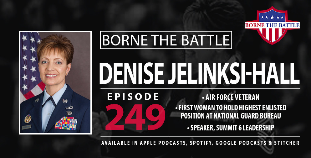 On this episode of Borne the Battle, Air National Guard Veteran Denise Jelinski-Hall discusses her selection as Senior Enlisted Advisor to the Chief of the National Guard Bureau, the changing roles of women in the military, and how “gray-area service members” are still entitled to VA benefits.