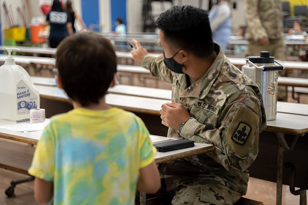 Hawaii Army National Guard soldiers serve their communities at home, and have been an integral asset during the COVID-19 pandemic. Following authorization for 5- to 11-year-olds to receive the vaccine, Hawaii National Guard (HING) Joint Task Force (JTF) service members partnered with the Department of Health and Department of Education to provide non-medical support to public schools administering the vaccines.