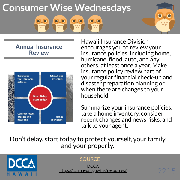 automobile insurance, Department of Commerce and Consumer Affairs (DCCA), disaster preparation, flood insurance, home insurance, home inventory, hurricane insurance, insurance review, Off the DCCA Twitter feed