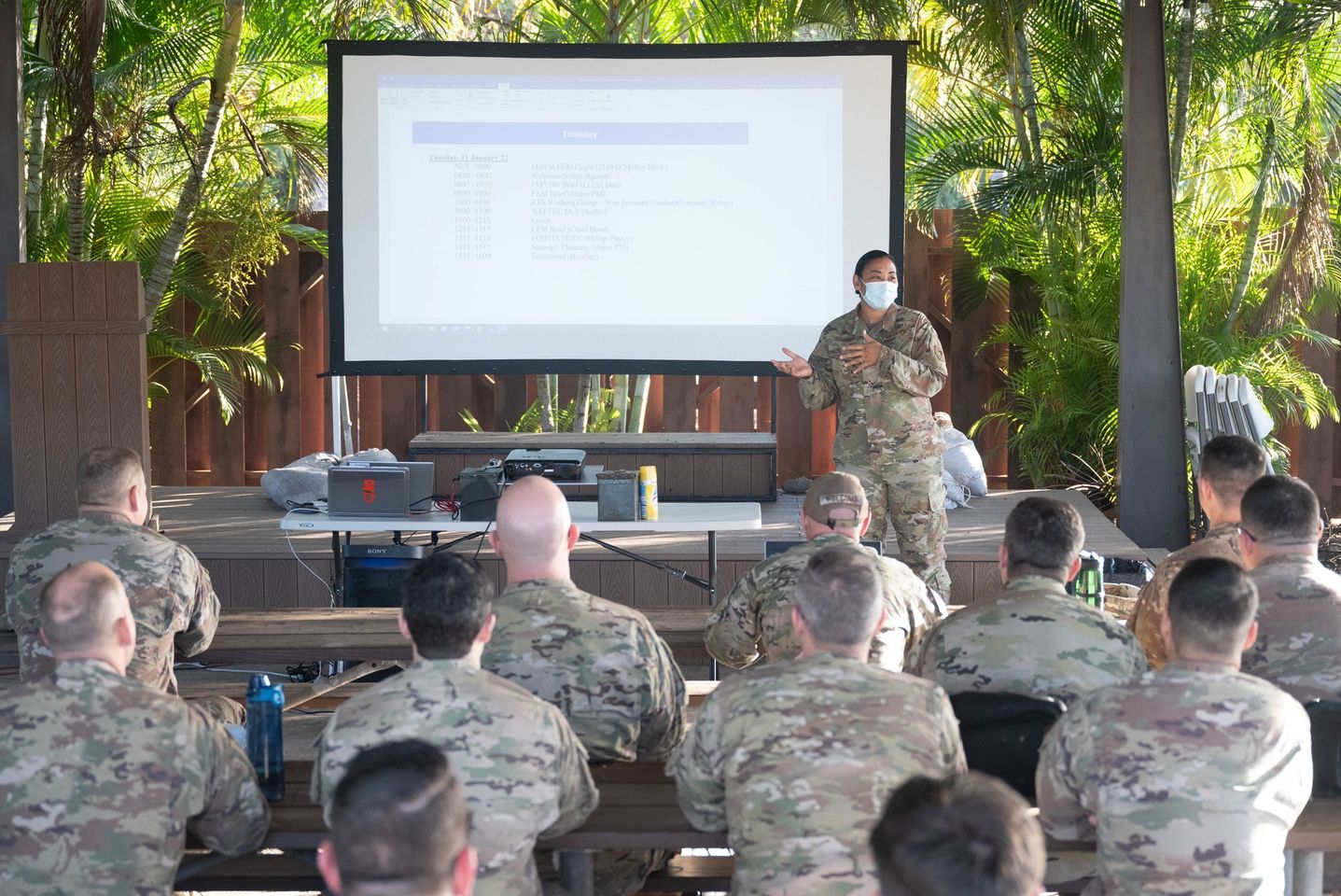 Leadership from the 154th Missions Support Group and 154th CES collaborated with the attending Airmen in an outdoor venue and discussed how to effectively startup the local EOD program.
