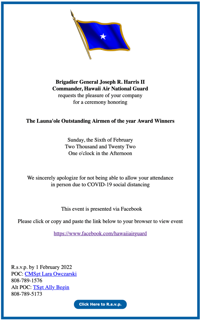 Hawaii Air National Guard (HIANG), Hawaii Air National Guard Facebook page, Launa‘ole Awards Ceremony, virtual ceremony