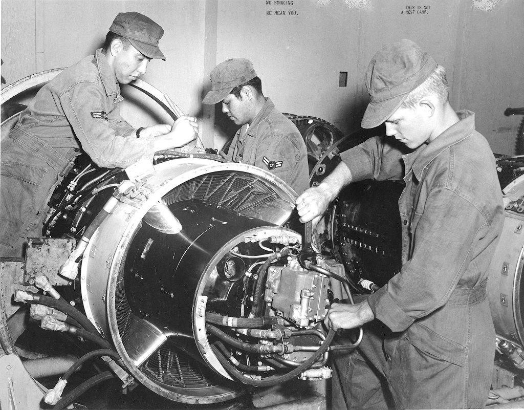 In the fashion world, styles appear, disappear and reappear. This photograph show Hawaii Air National Guard maintenance personnel in coveralls in the early 1950. Coveralls were in use from the 1940s through the early 1950s when the transitioned to fatigues.