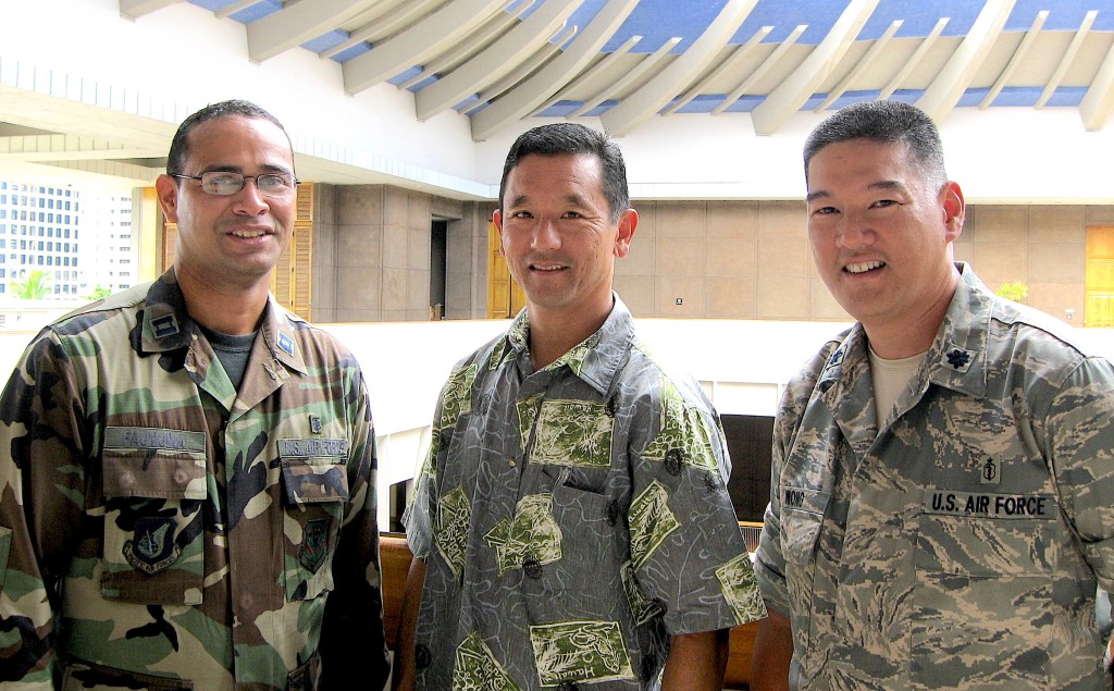 In this photograph are (L-R): James Faumuina, Stanley Sato, and Erik Wong, all members of the 154th Medical Group.
