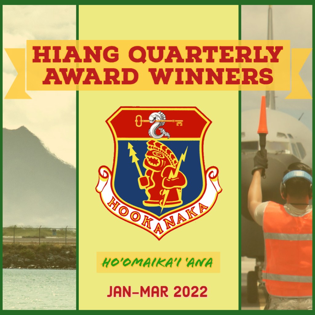 On behalf of Brig. Gen. Joseph R. Harris II, HIANG Commander, we are proud to recognize the HIANG’s quarterly award winners for the period of January – March 2022: