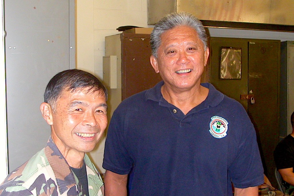 This photograph show Harold Kaneshiro and Roy Tamashiro, both members of the 154th Civil Engineering Squadron. Harold’s last UTA weekend was on October 9-10, 2004, and this photograph was taken shortly after he received his retirement shadow box.