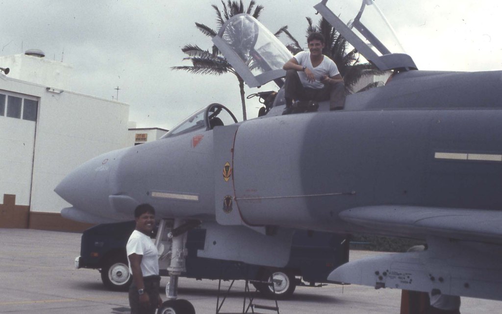 This undated photograph shows Michael Montero (left) and an unidentified member working on a McDonnell Douglas F-4C Phantom. Mike served for many years as a full-time technician before leaving the program before his retirement.