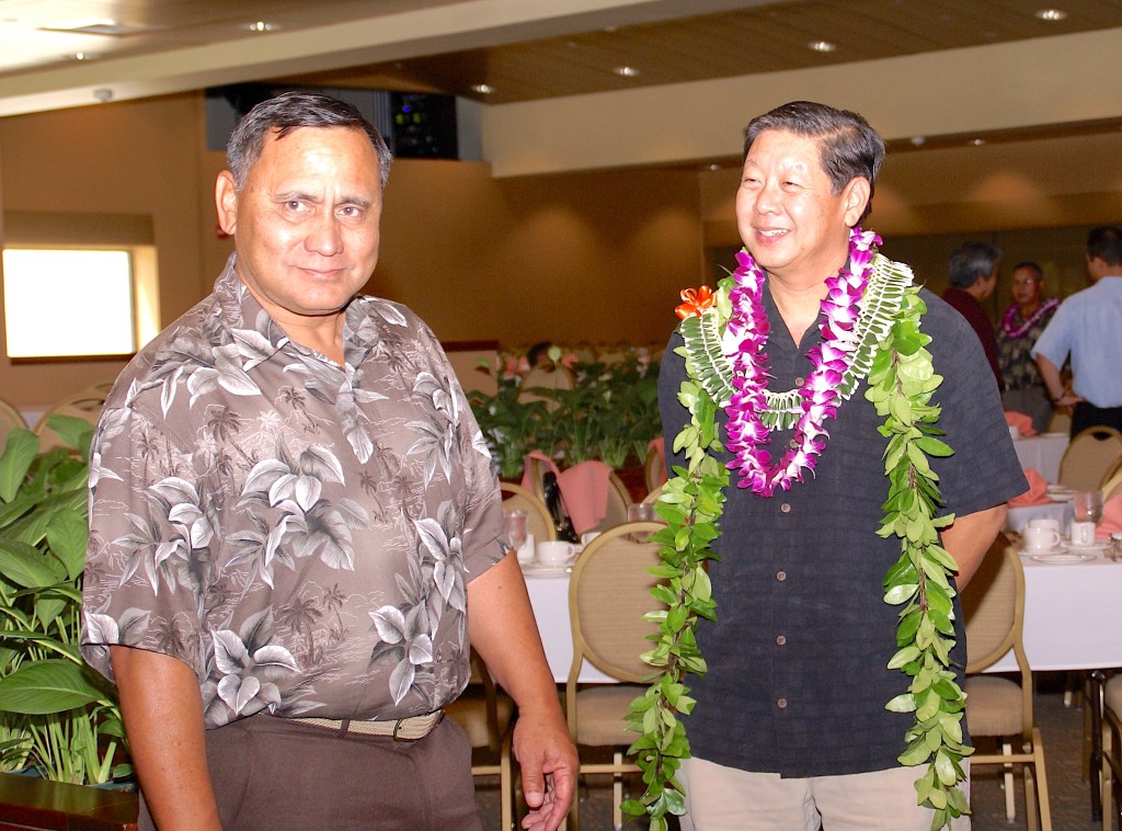 This photograph shows Vincent Ramos and Lester Ho at the April 17, 2009 luncheon. Vince was part of the KC-135 tanker maintenance team. Les was retiring from the then-154th Mission Support Flight.