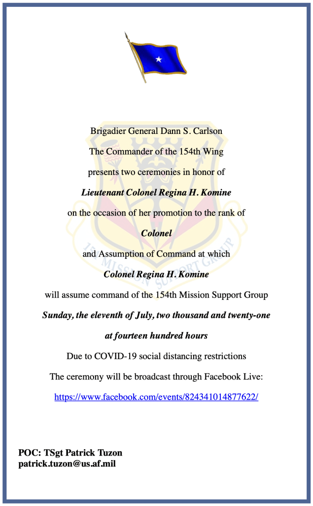 * Col John S.W. Lee takes command of the 154th Tactical Fighter Group from Col James R. Ashford